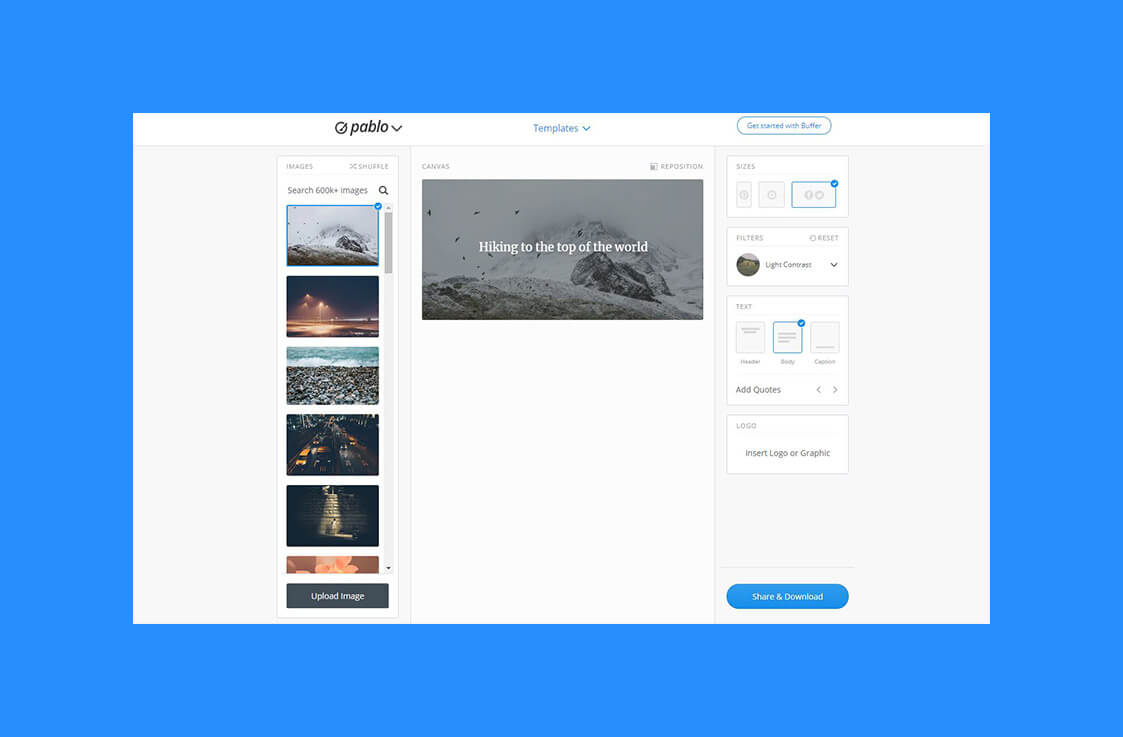 It can be hard cutting through the endless noise on social media. But it doesn’t have to be. With Pablo, it’s really easy to create beautifully layered imagery that demands attention from your audience. And best of all, it resizes images for each social media platform.