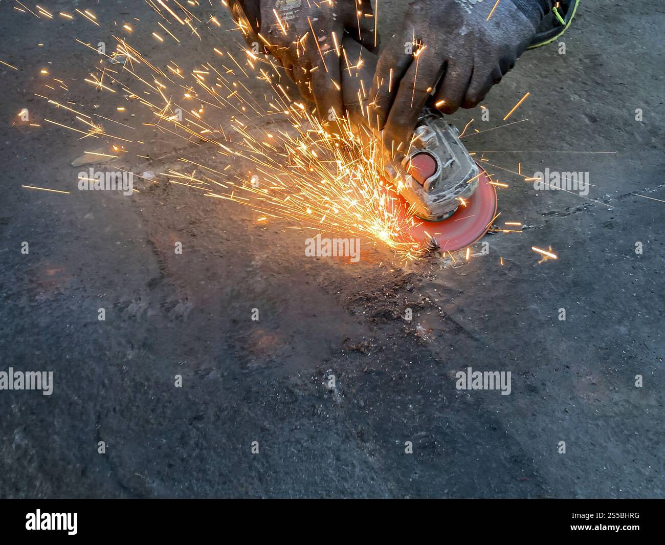 Worker Cutting Metal Profile with Electric Angle Grinder - Smartphone Captured Stock Imagehttps://www.alamy.com/image-license-details/?v=1https://www.alamy.com/worker-cutting-metal-profile-with-electric-angle-grinder-image640112382.html