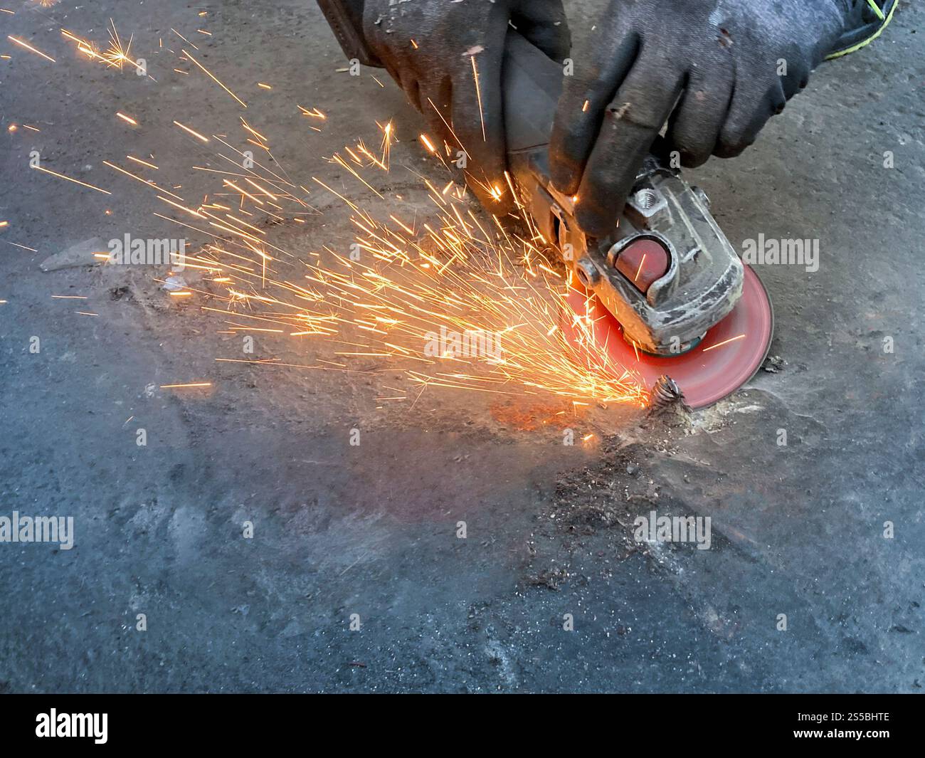 Worker Cutting Metal Profile with Electric Angle Grinder - Smartphone Captured Stock Imagehttps://www.alamy.com/image-license-details/?v=1https://www.alamy.com/worker-cutting-metal-profile-with-electric-angle-grinder-image640112356.html