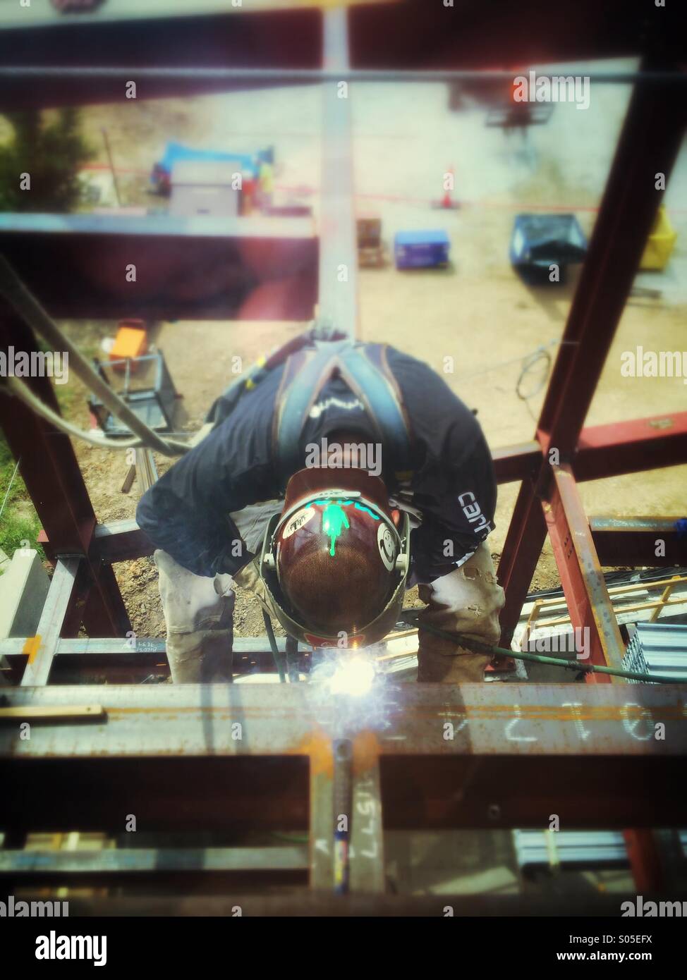 A steel worker welds a beam on a construction site for a new office building - Smartphone Captured Stock Imagehttps://www.alamy.com/image-license-details/?v=1https://www.alamy.com/stock-photo-a-steel-worker-welds-a-beam-on-a-construction-site-for-a-new-office-309907806.html