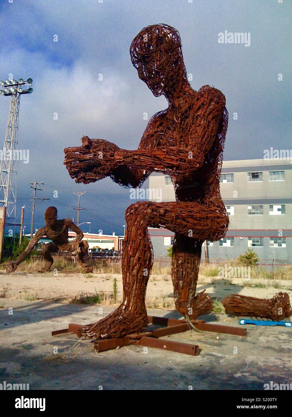 Giant steel sculpture of a man in prayer, with another sculpture of a man kneeling in the background, - Smartphone Captured Stock Imagehttps://www.alamy.com/image-license-details/?v=1https://www.alamy.com/giant-steel-sculpture-of-a-man-in-prayer-with-another-sculpture-of-a-man-kneeling-in-the-background-image311016635.html