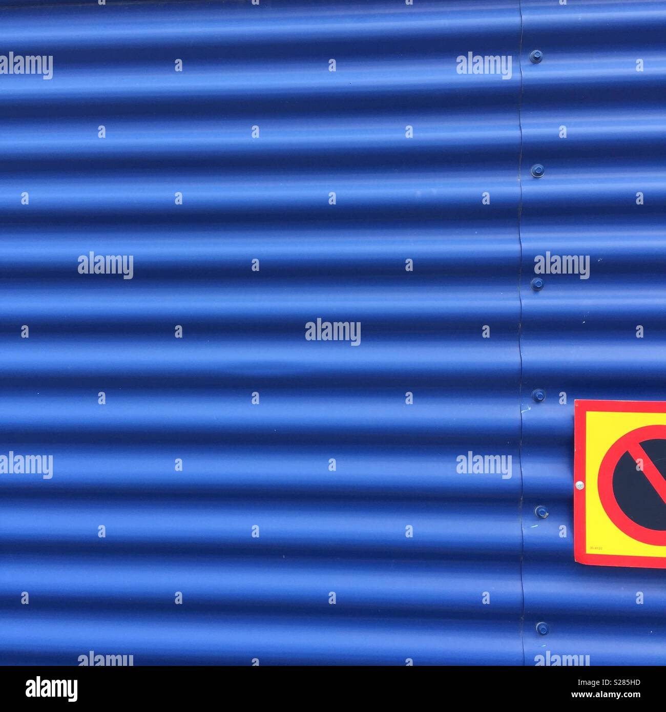 Blue corrugated iron plates and No parking sign. - Smartphone Captured Stock Imagehttps://www.alamy.com/image-license-details/?v=1https://www.alamy.com/blue-corrugated-iron-plates-and-no-parking-sign-image311195961.html