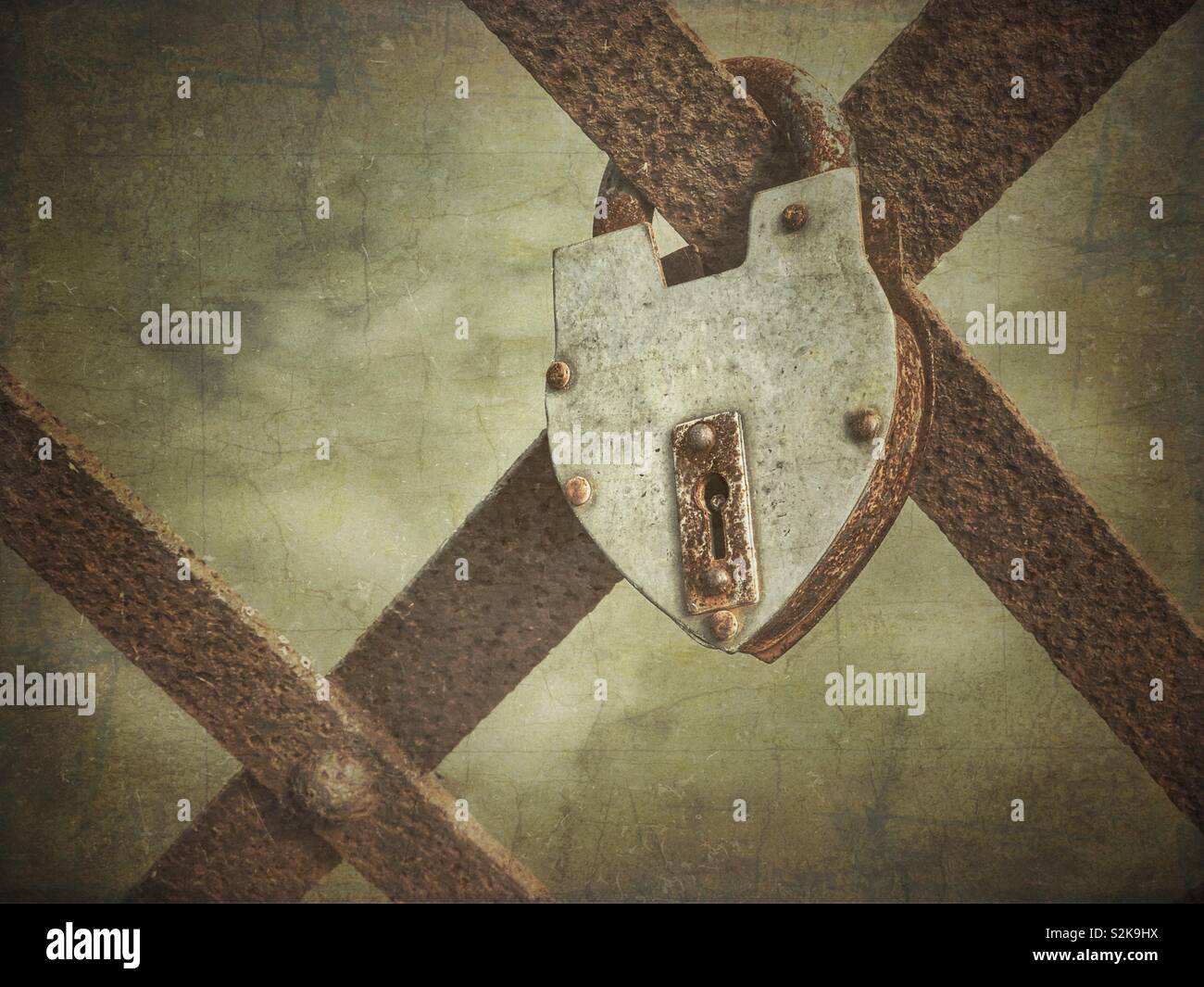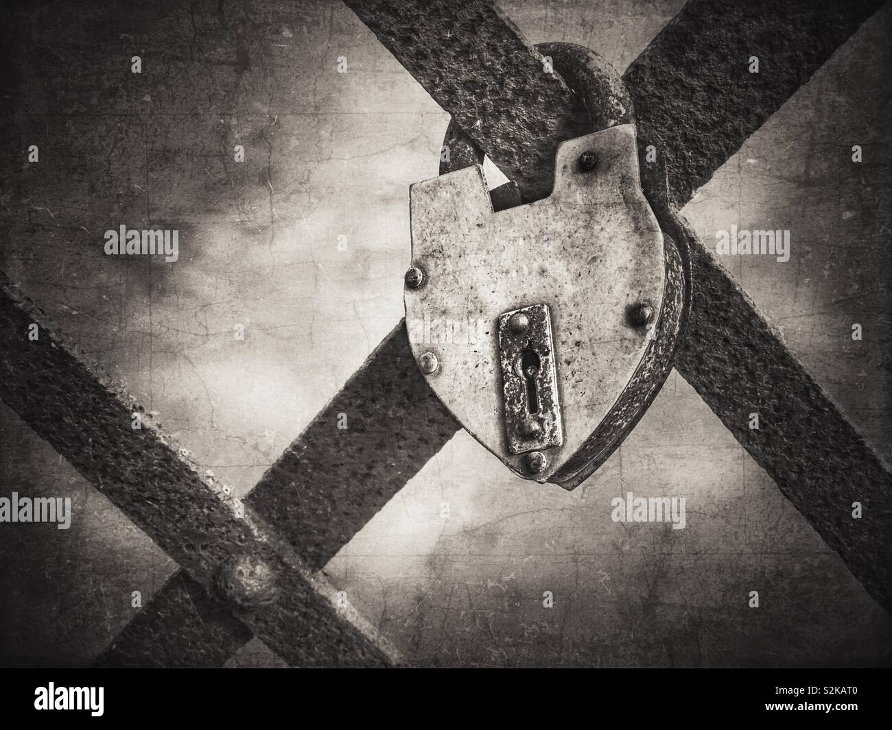 Old rusted love lock on trestle bridge - Smartphone Captured Stock Imagehttps://www.alamy.com/image-license-details/?v=1https://www.alamy.com/old-rusted-love-lock-on-trestle-bridge-image311440582.html