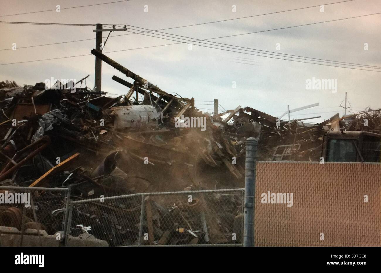 RFS0XHDT–Abstract corrugated iron on the side of an industrial building in Burlington, Vermont.