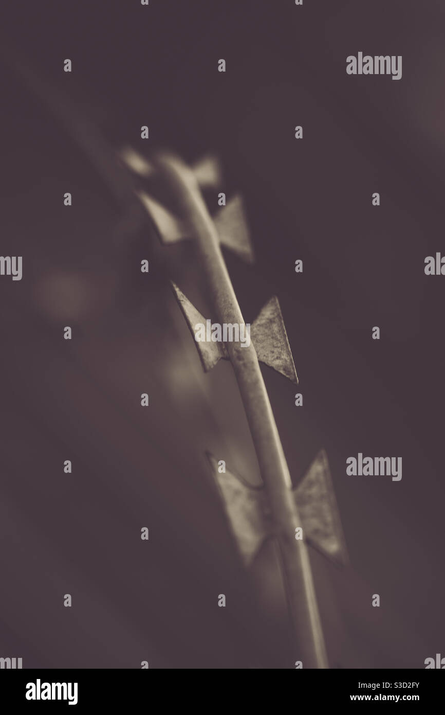 RFS3D2FY–Sharp razor wire in a vintage image with copy space