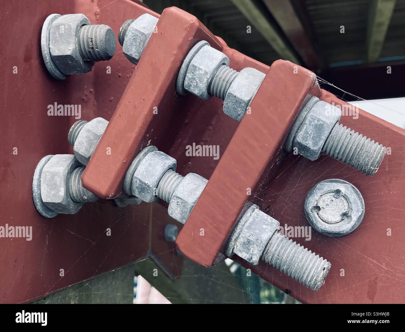 red metal frame is fixed with gray metal screws and nuts - Smartphone Captured Stock Imagehttps://www.alamy.com/image-license-details/?v=1https://www.alamy.com/red-metal-frame-is-fixed-with-gray-metal-screws-and-nuts-image312023891.html