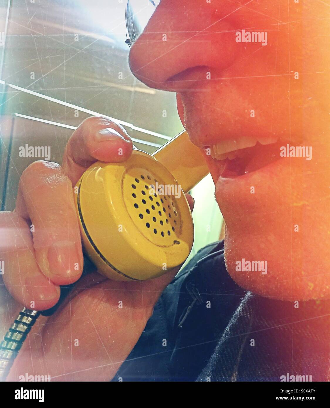 Detail of vintage stainless steel microphone with amber light and Venetian blind pattern on wall behind - Smartphone Captured Stock Imagehttps://www.alamy.com/image-license-details/?v=1https://www.alamy.com/detail-of-vintage-stainless-steel-microphone-with-amber-light-and-venetian-blind-pattern-on-wall-behind-image311904993.html