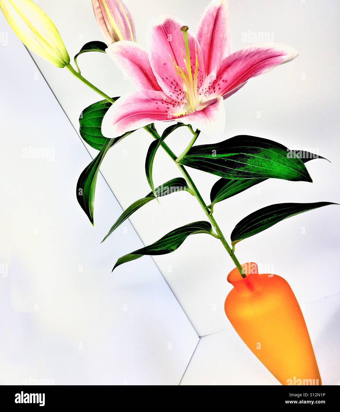 Pink lily in Orange voice - Smartphone Captured Stock Imagehttps://www.alamy.com/image-license-details/?v=1https://www.alamy.com/stock-photo-pink-lily-in-orange-voice-310461698.html