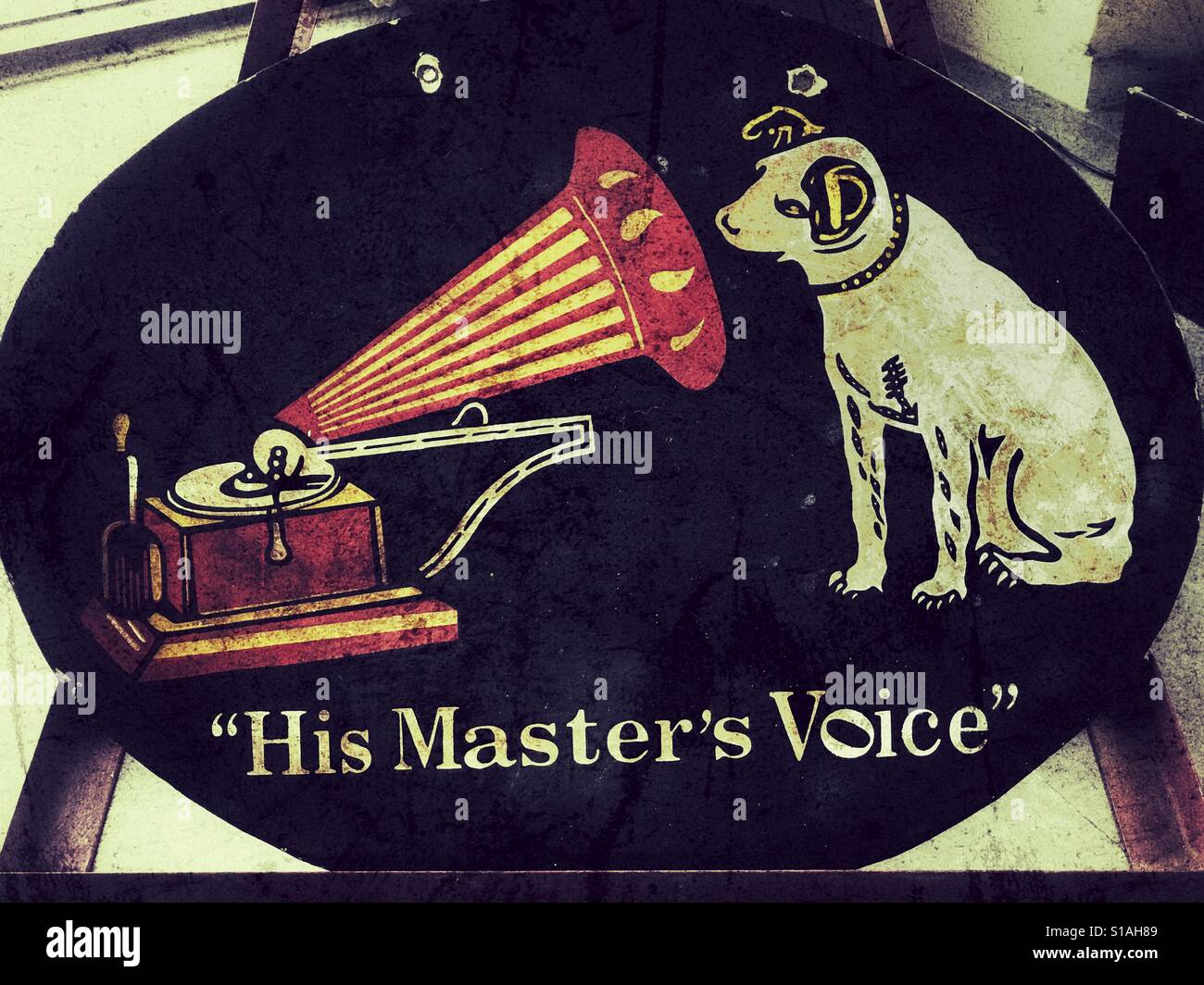 Close-up of the trademark featuring nipper the dog on a Victrola photograph, United States - Smartphone Captured Stock Imagehttps://www.alamy.com/image-license-details/?v=1https://www.alamy.com/close-up-of-the-trademark-featuring-nipper-the-dog-on-a-victrola-photograph-united-states-image698133923.html