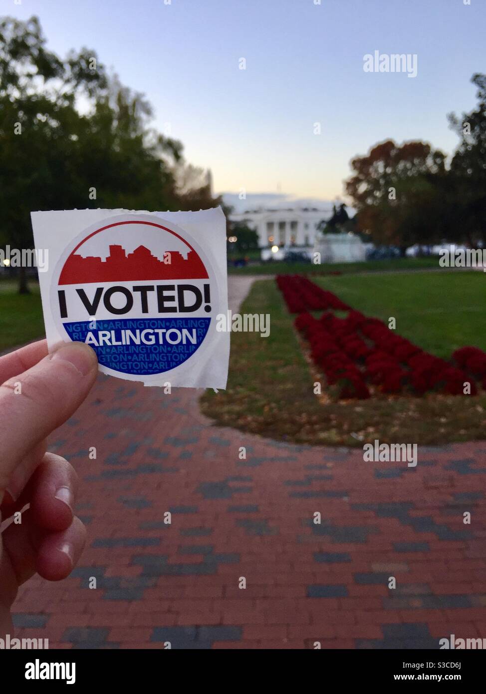 A woman holds up her “I voted!” I. Front of the White House in Washington DC. - Smartphone Captured Stock Imagehttps://www.alamy.com/image-license-details/?v=1https://www.alamy.com/a-woman-holds-up-her-i-voted!-i-front-of-the-white-house-in-washington-dc-image311904394.html