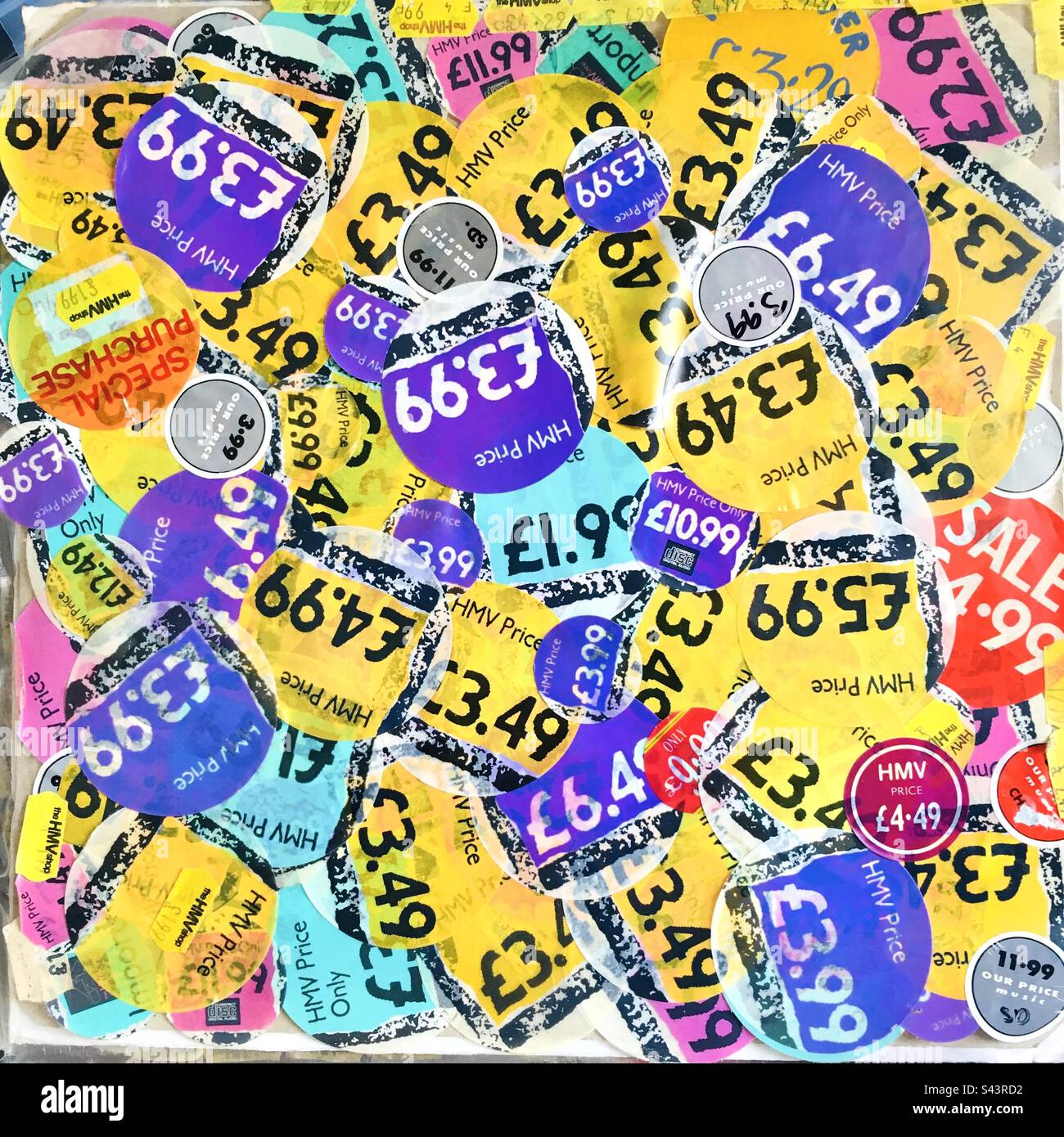 Vintage HMV music price stickers - Smartphone Captured Stock Imagehttps://www.alamy.com/image-license-details/?v=1https://www.alamy.com/vintage-hmv-music-price-stickers-image312329502.html